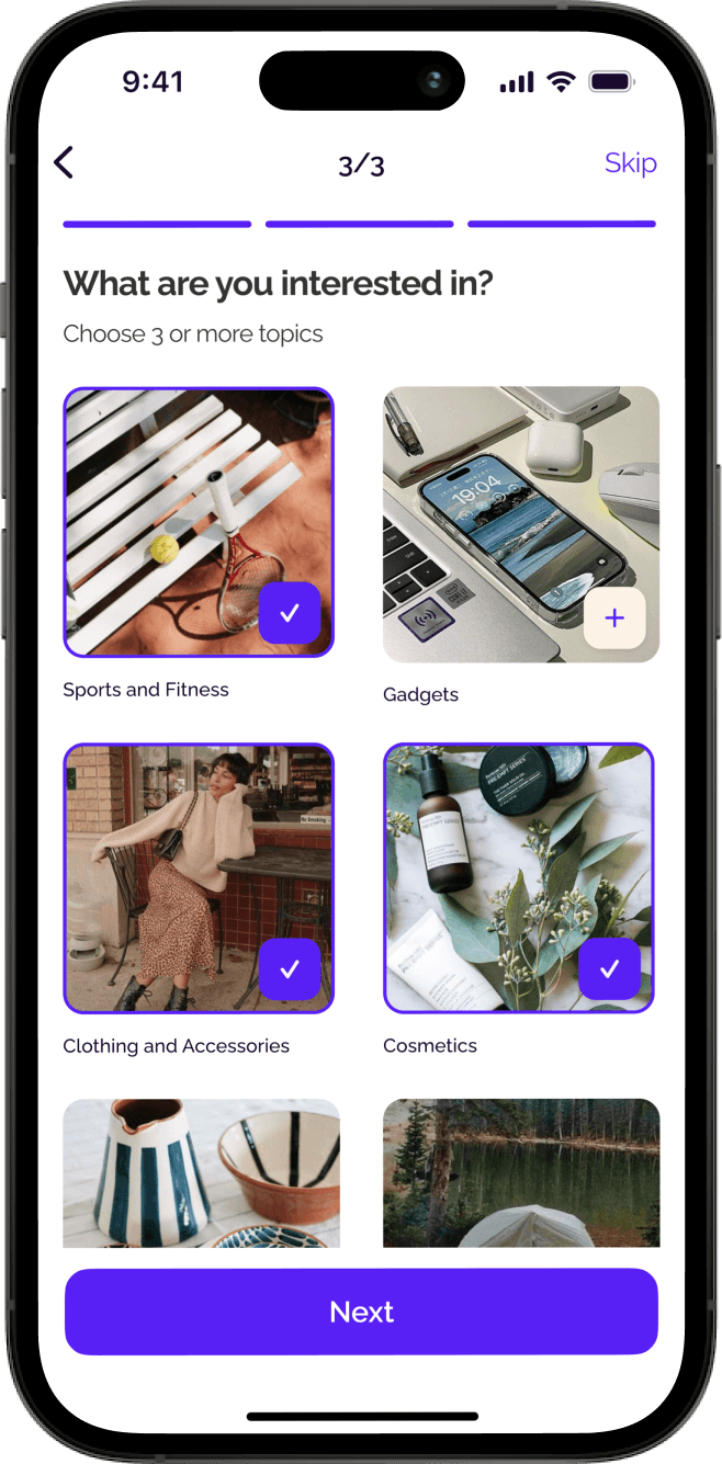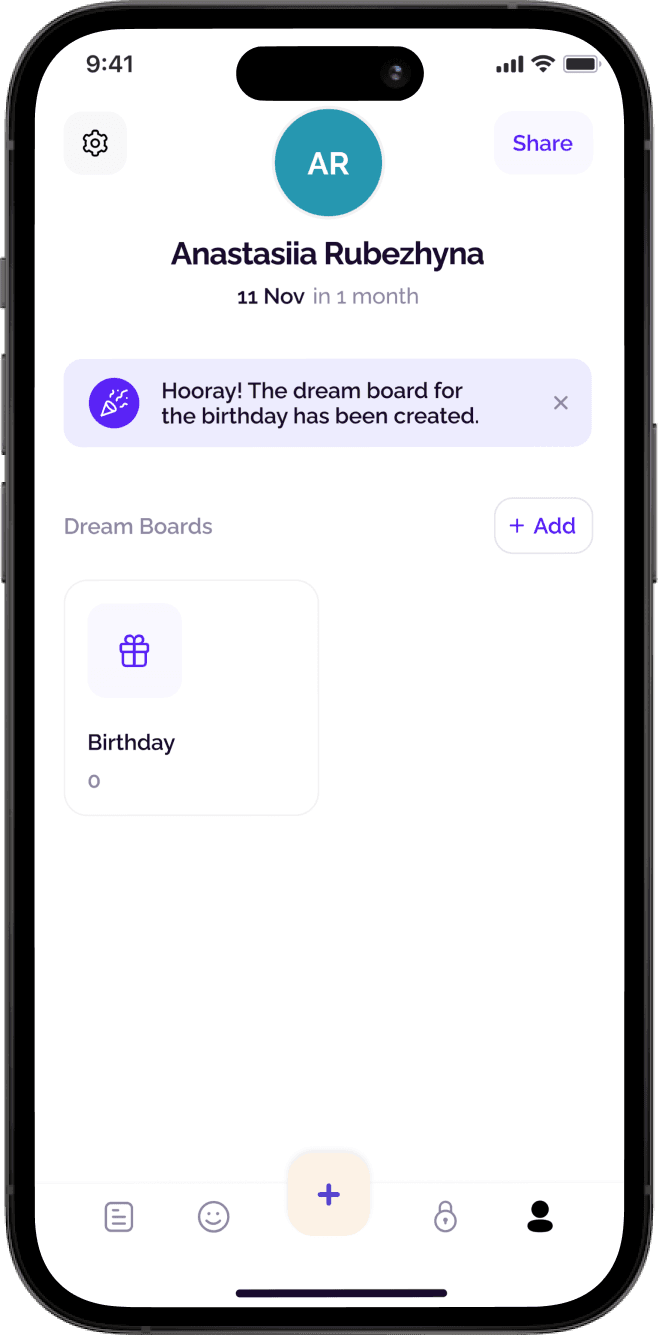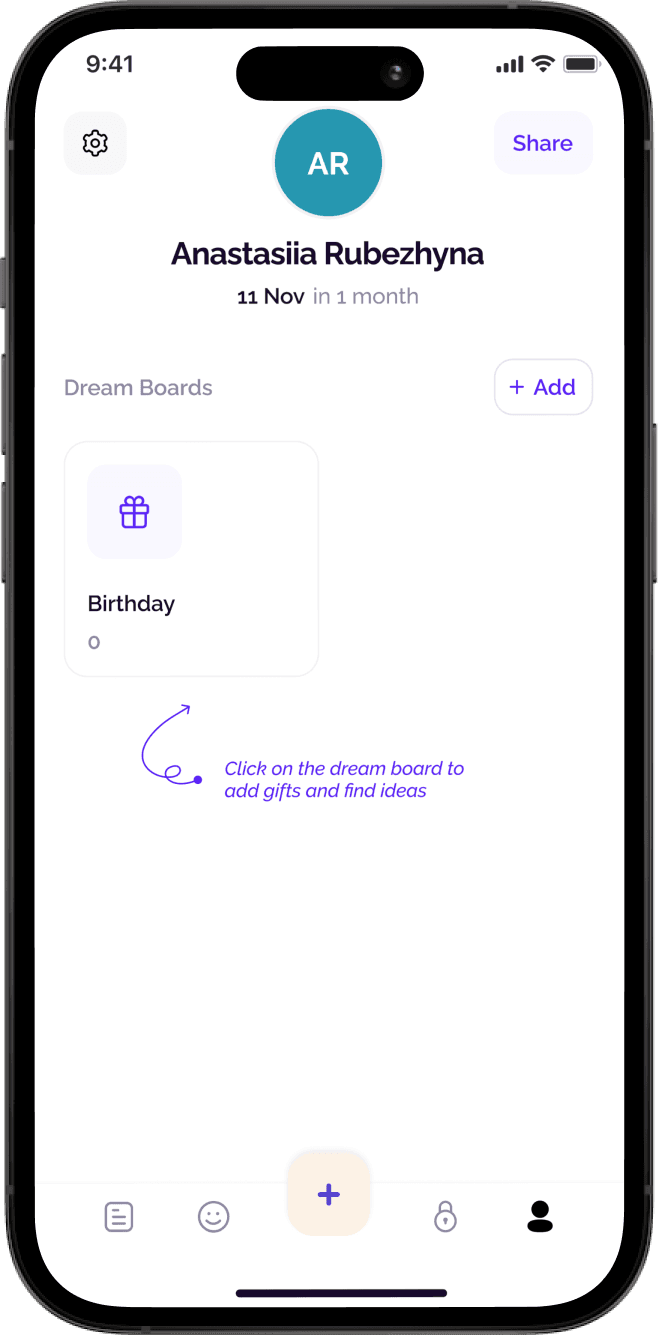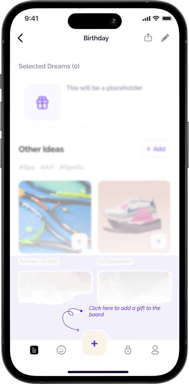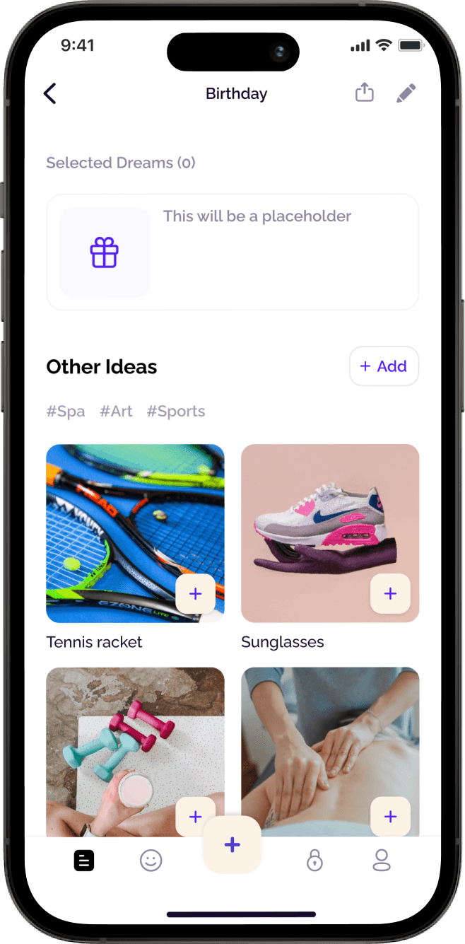 Propose a design solution that will help users get inspired and generate ideas for their wishlist, allowing them to add more dreams within the Dreamezer app.