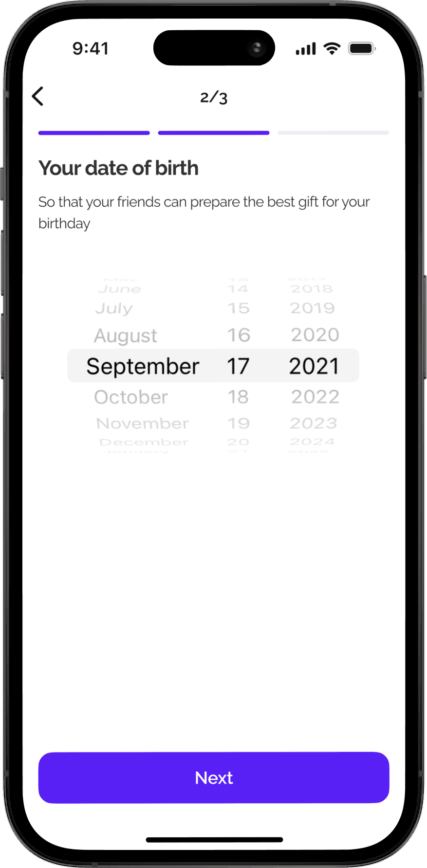 Your name and date of birth are automatically added with the option to change them.