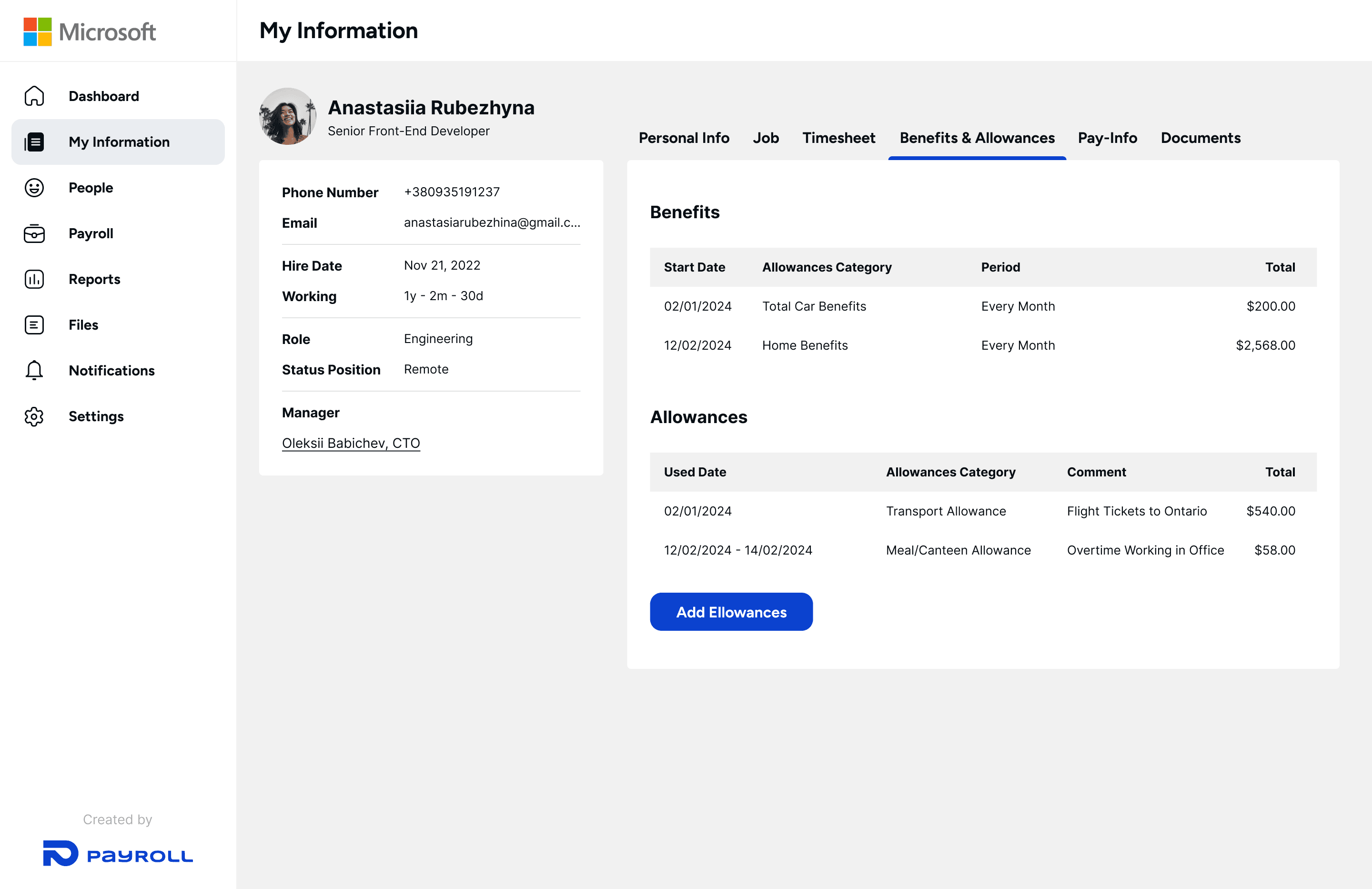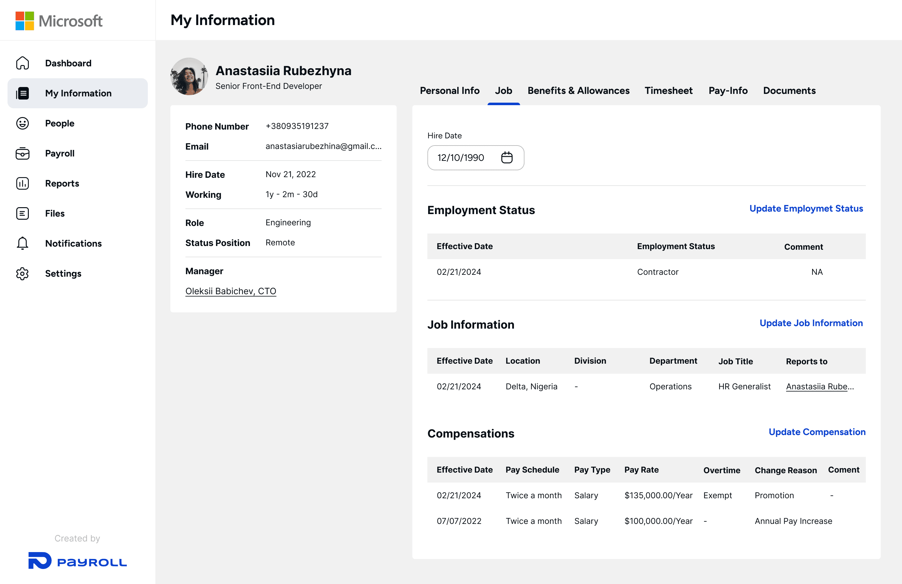 PayRaty Project: As a result, the low-fidelity prototype of the payroll system has become a fundamental step towards creating a full-fledged product, adapted to the real needs of users and optimized for efficient payroll management. This process not only demonstrates our capability for innovative approaches in the field of financial technologies but also reflects our commitment to creating intuitive and effective solutions. The work on the prototype identified key aspects that require further development and improvement, allowing us not only to meet current market demands but also to anticipate future trends in payroll management. Ultimately, our goal is to provide a solution that is not only technologically advanced but also maximally convenient and useful for the end user.