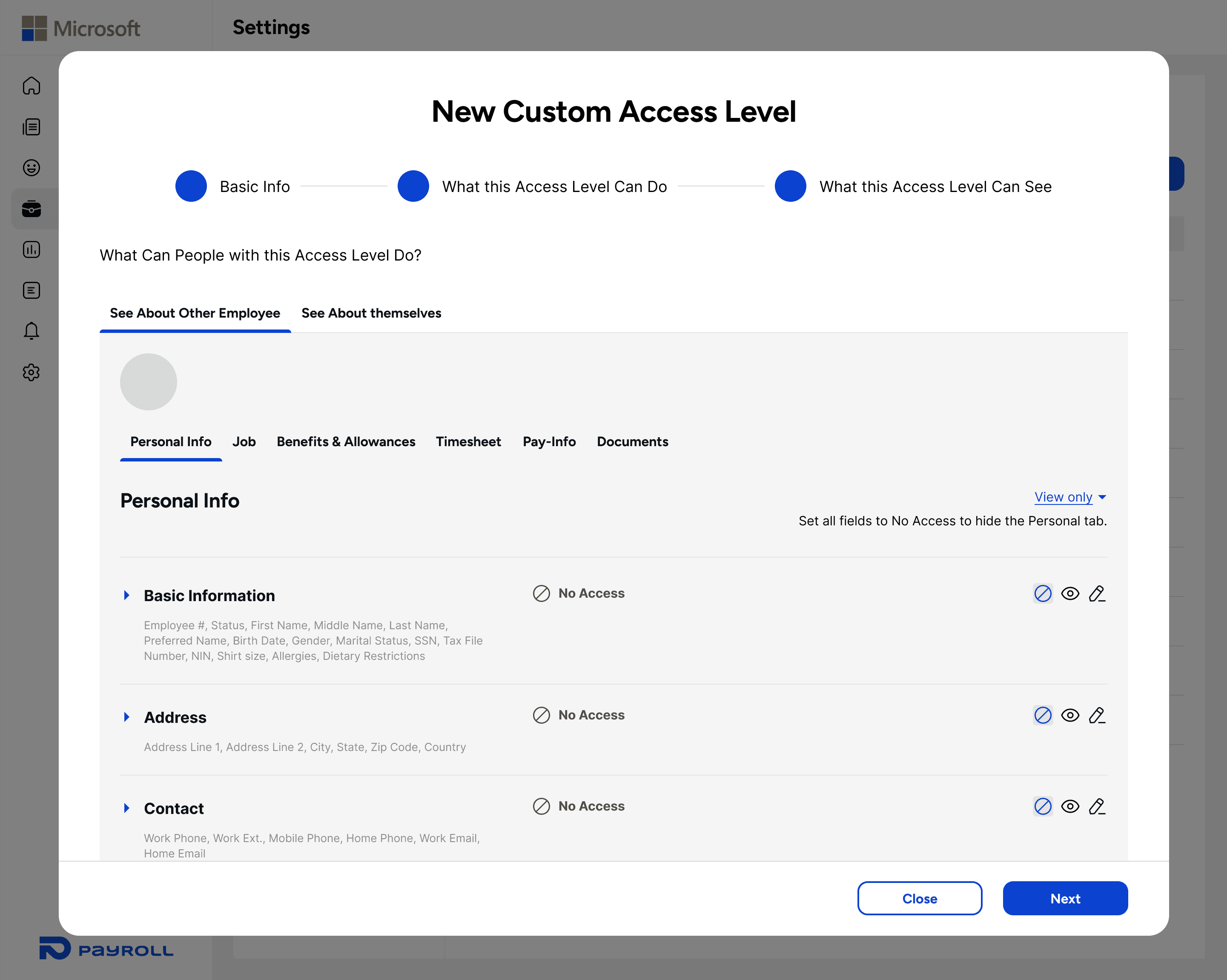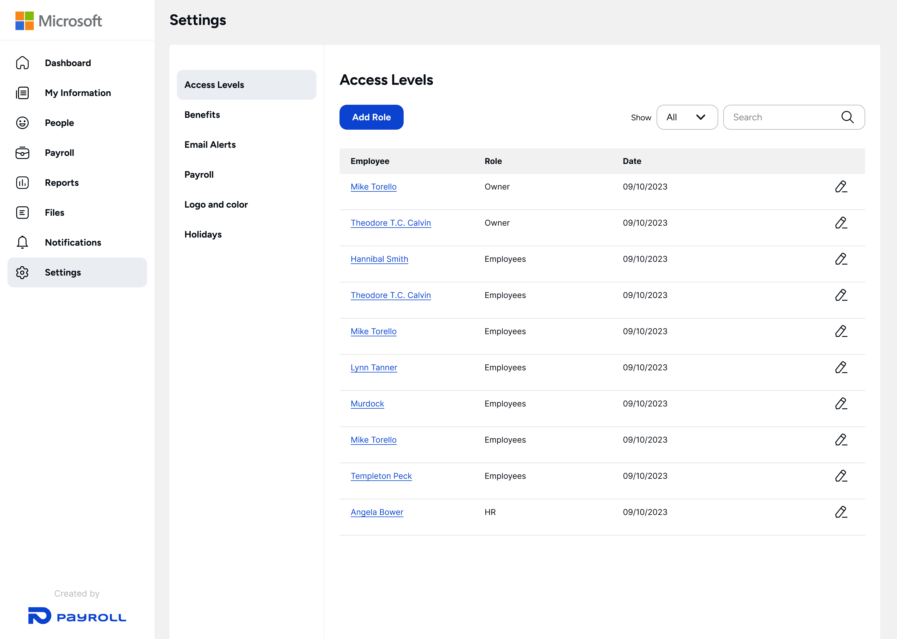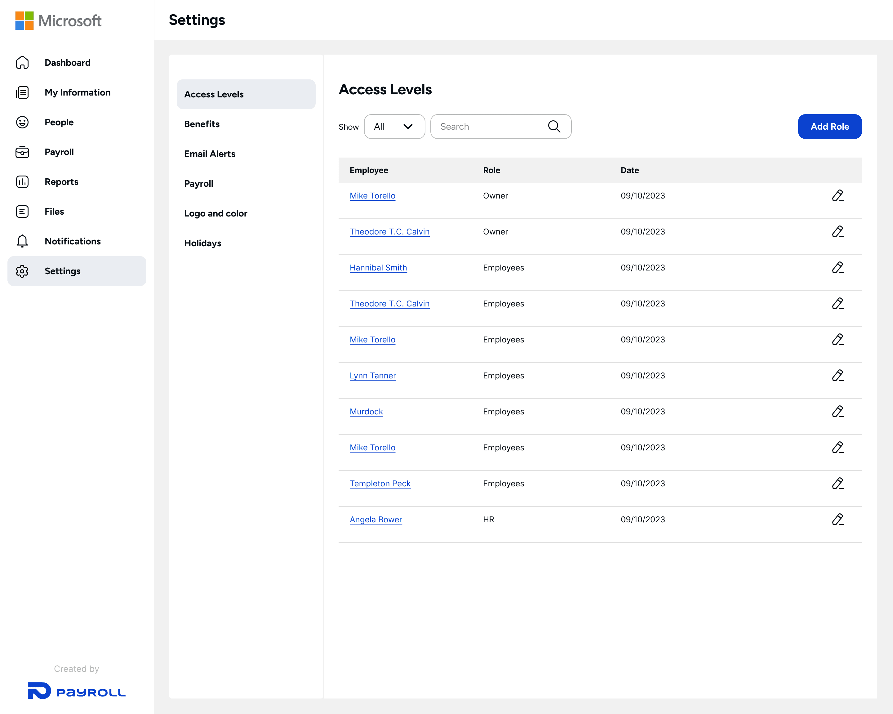 User Settings for Specific Roles - Creation of tools for configuring functional access rights, such as hiring management, employee data editing, and vacation policy management.