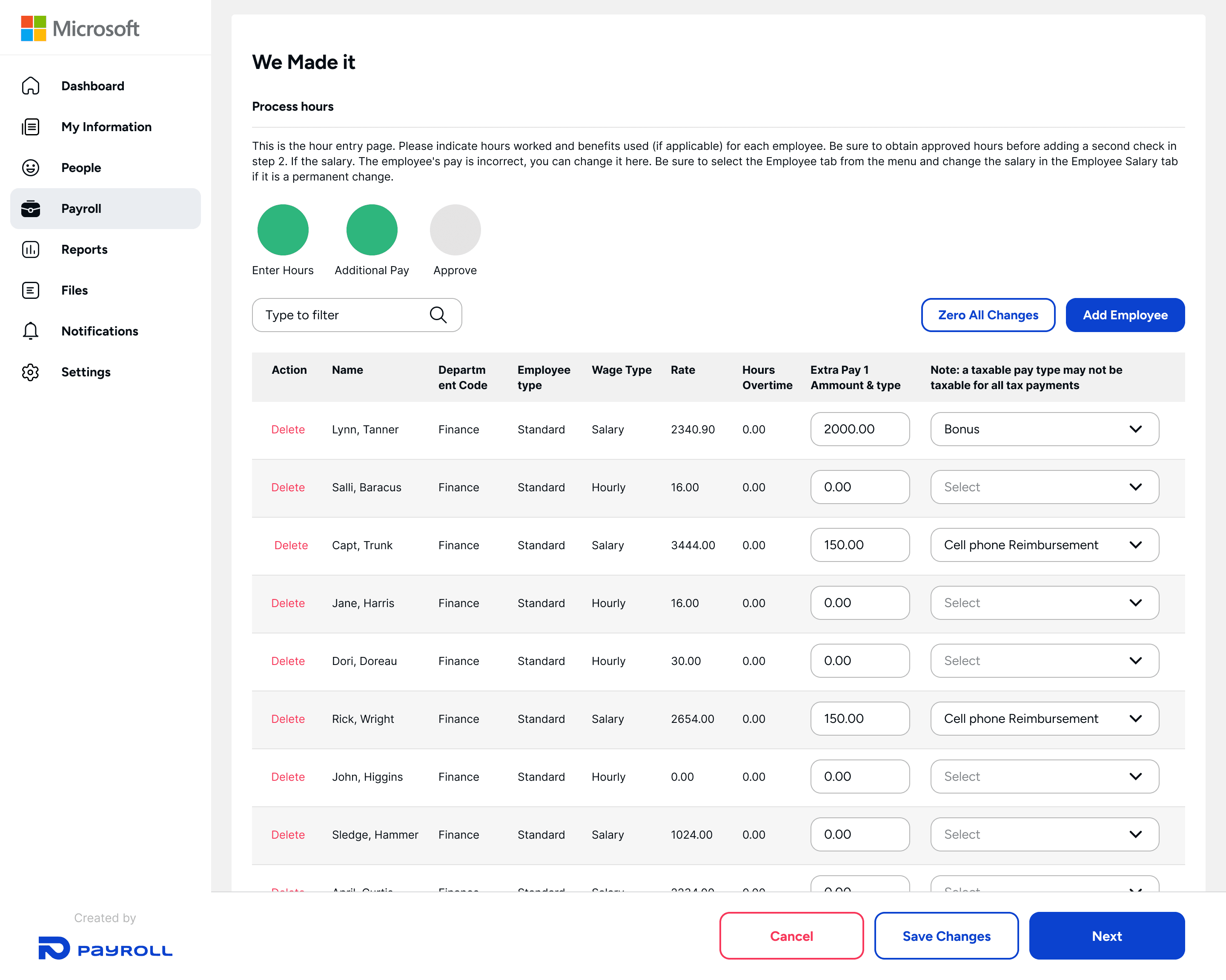 Calculate the payroll for my company's employees, using an online payroll application. So that I can accurately calculate the taxable income and tax amount.