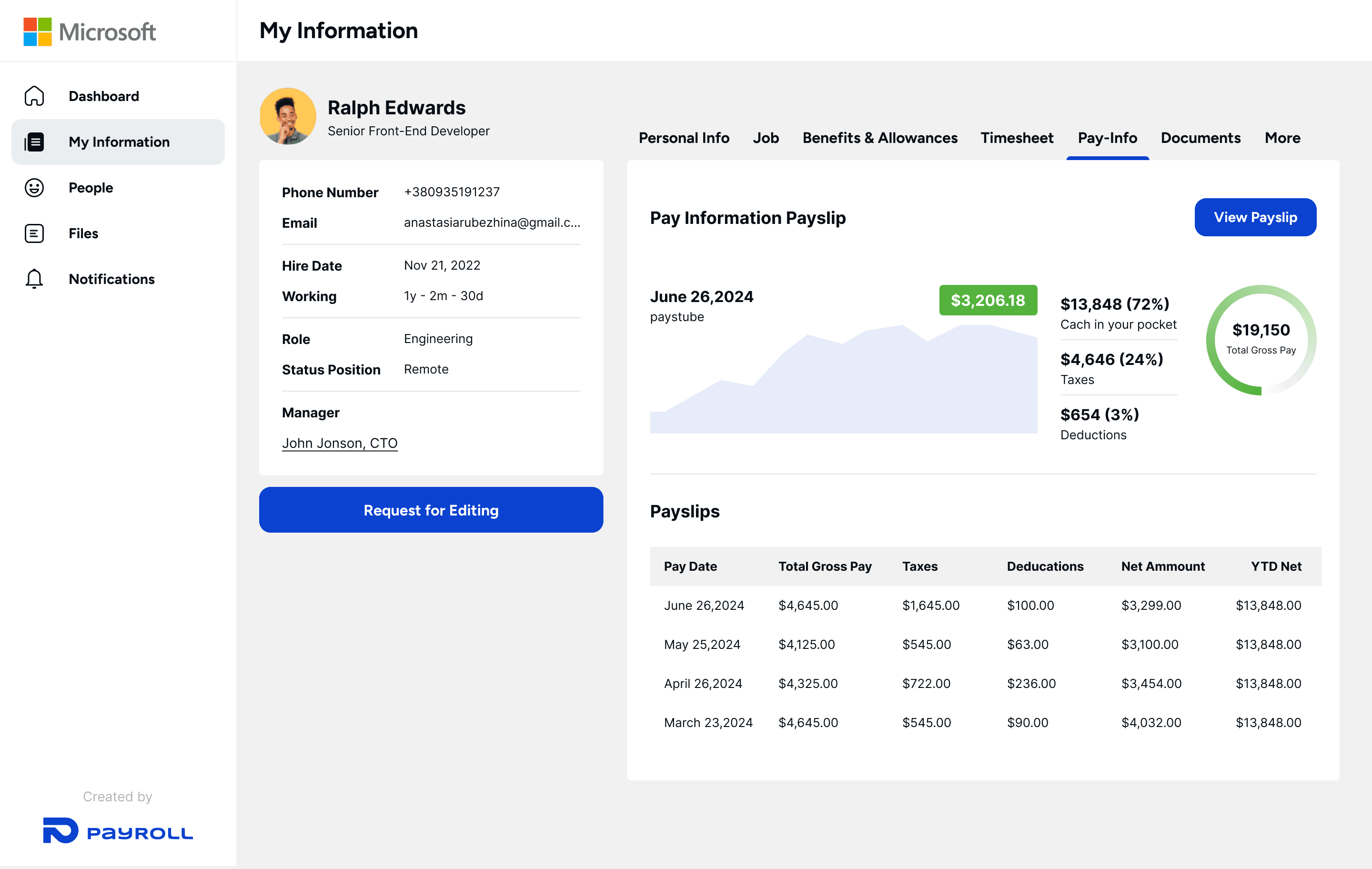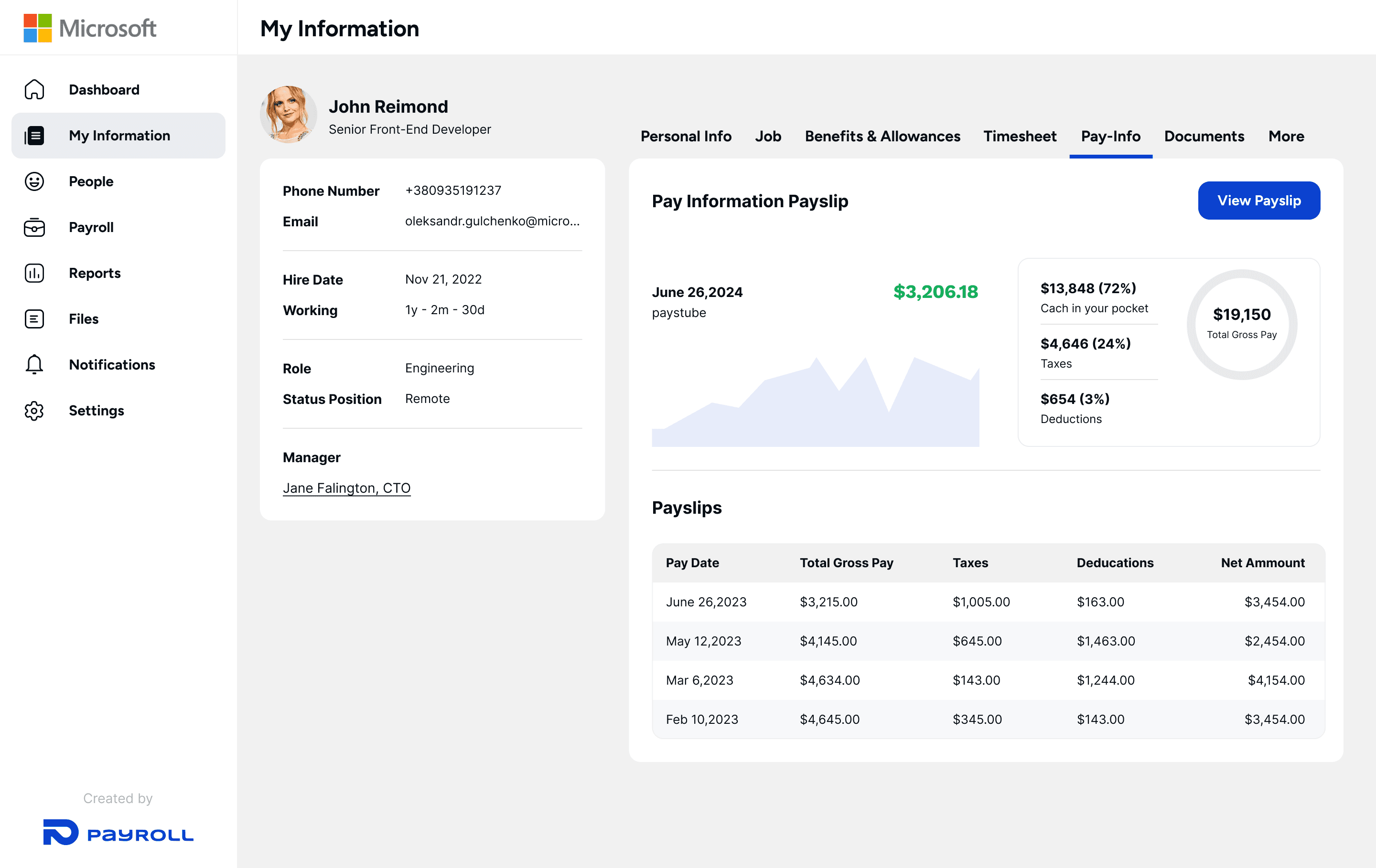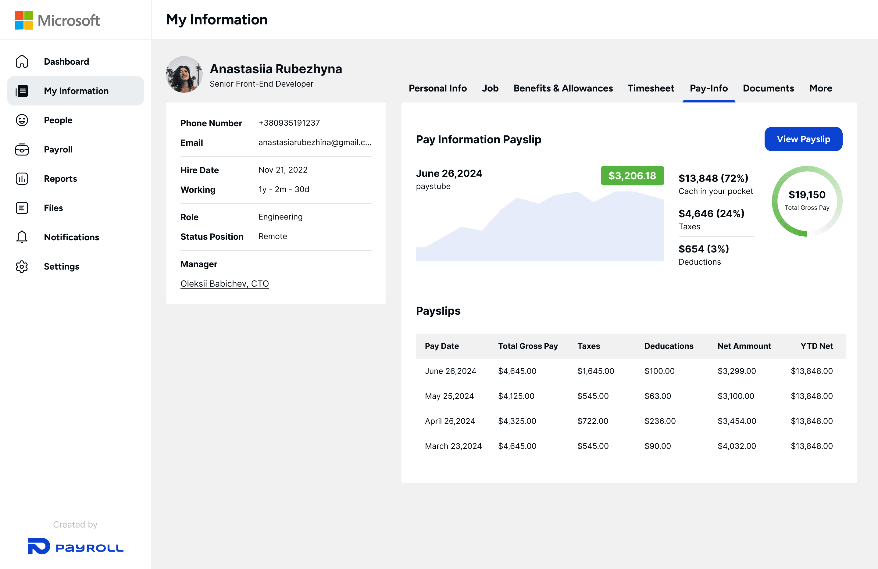 Access & manage my payroll information online, so that I can stay informed about my earnings, deductions, and other payroll details.
