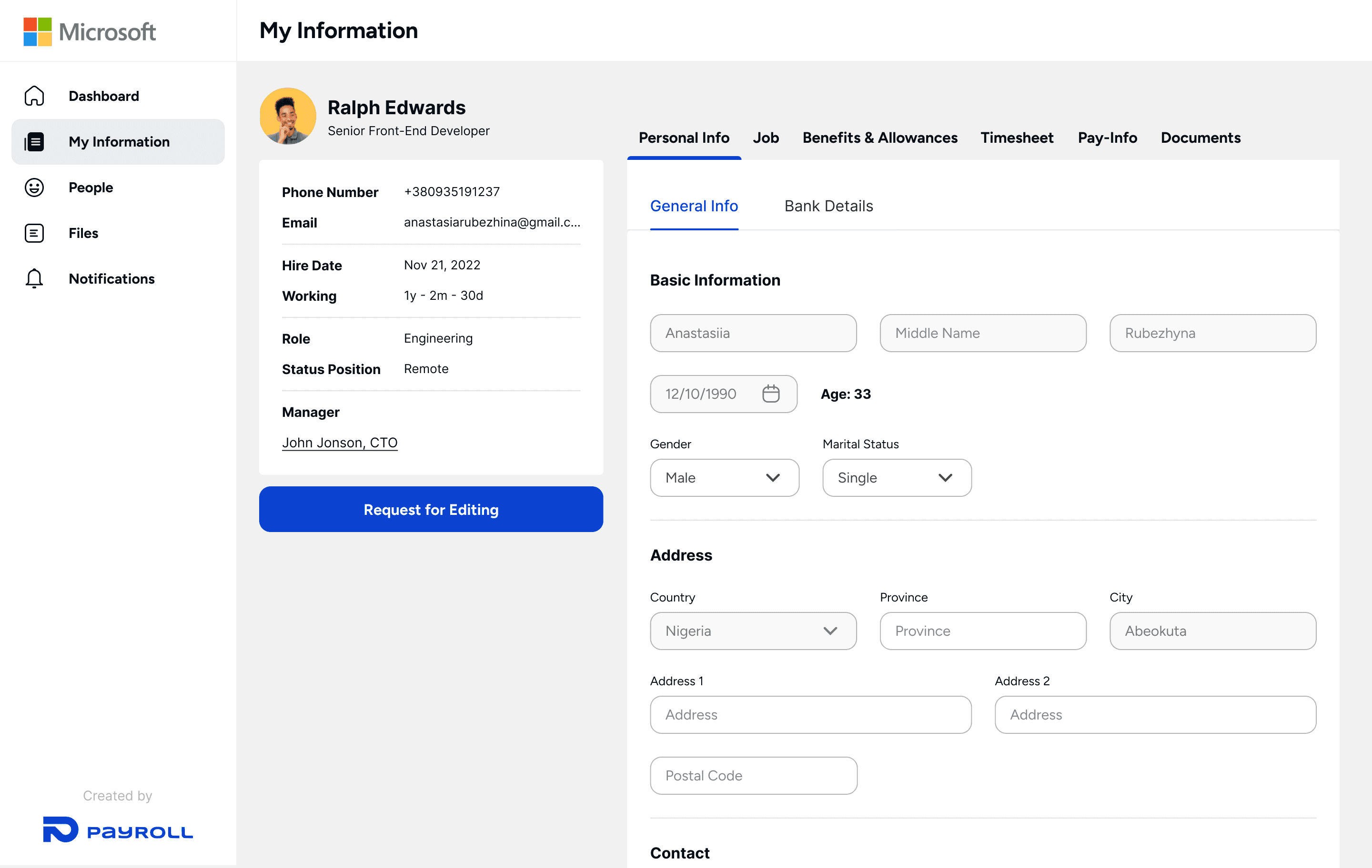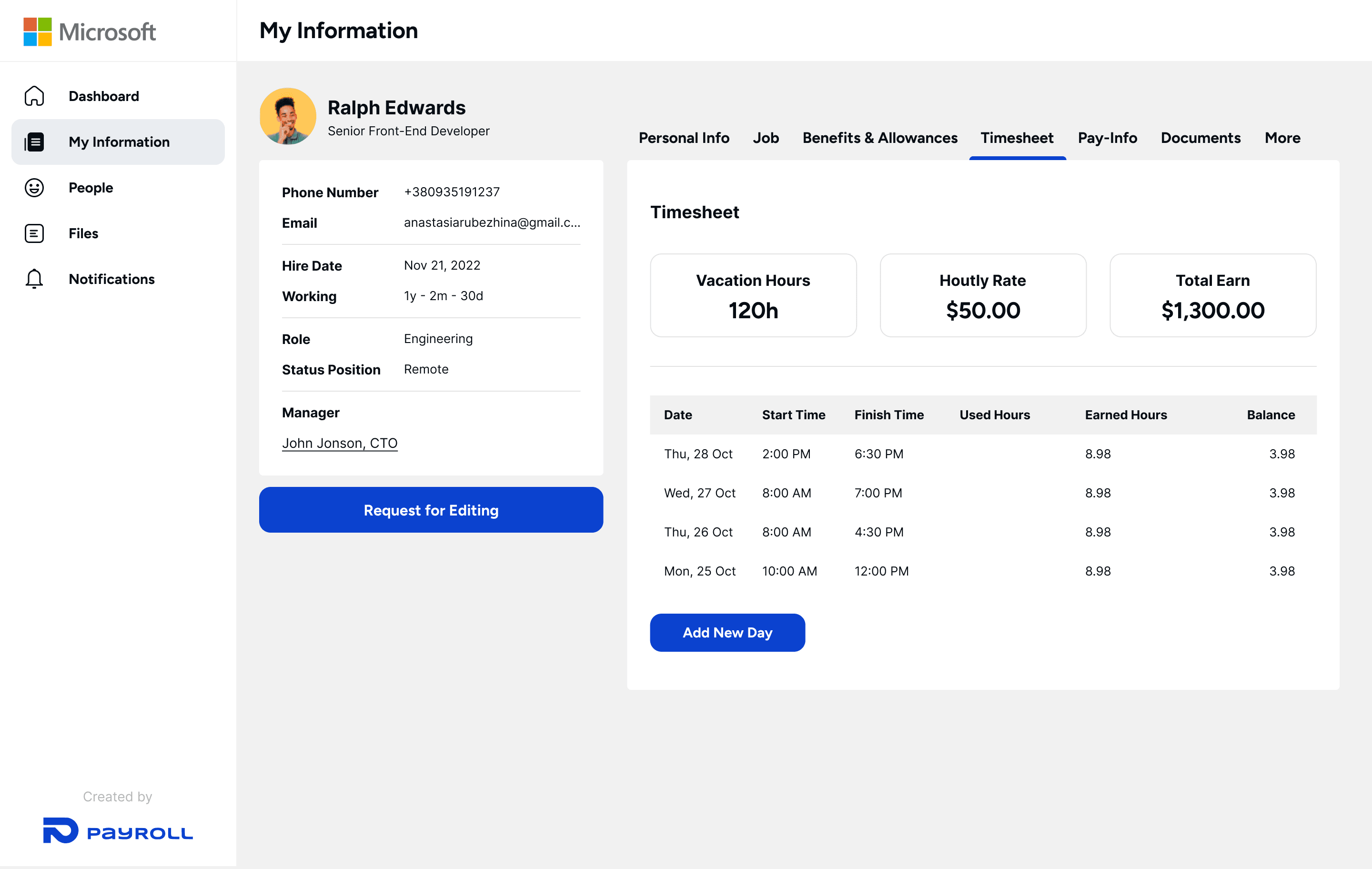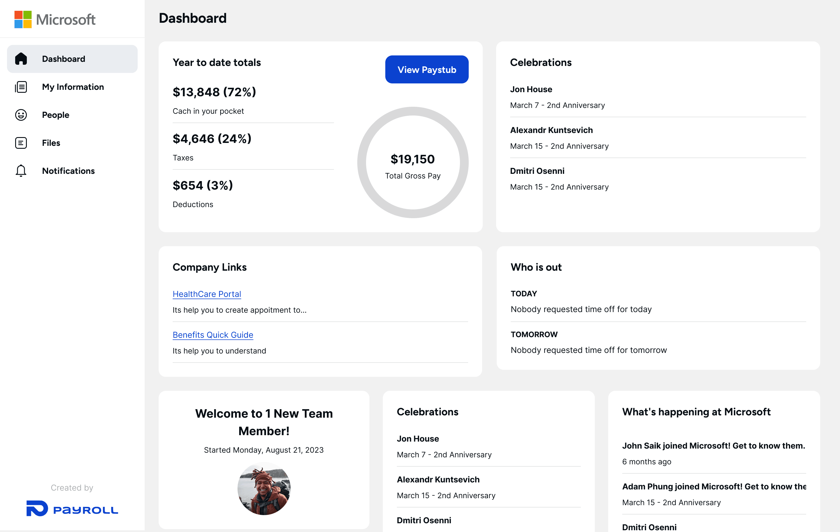 Access & manage my payroll information online, so that I can stay informed about my earnings, deductions, and other payroll details.