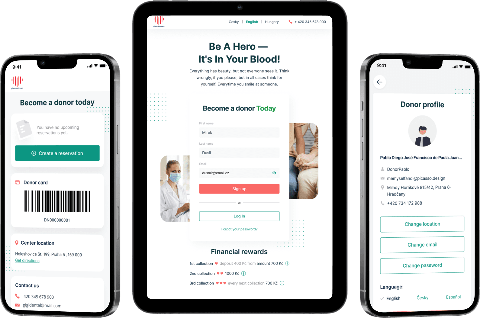 The goal of this project was to create administration for the already existing Plasma Donation platform. During the journey, we created a style guide, added a few complex app sections, and partially redesigned the old ones. For mobile, tablet and desktop